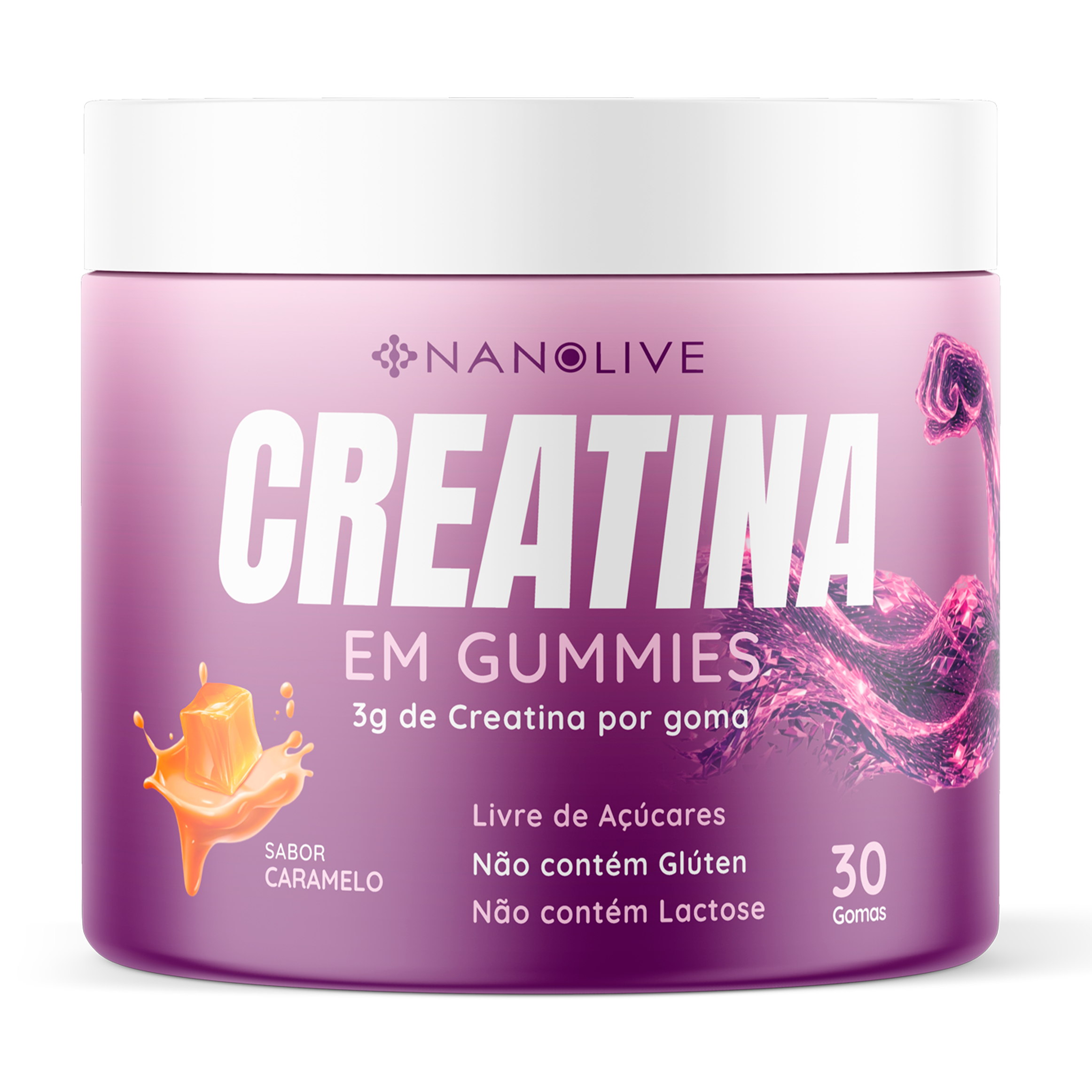 Agora, você pode consumir de forma prática e saborosa com a Creatina Gummies 3g sabor caramelo — sem açúcar.