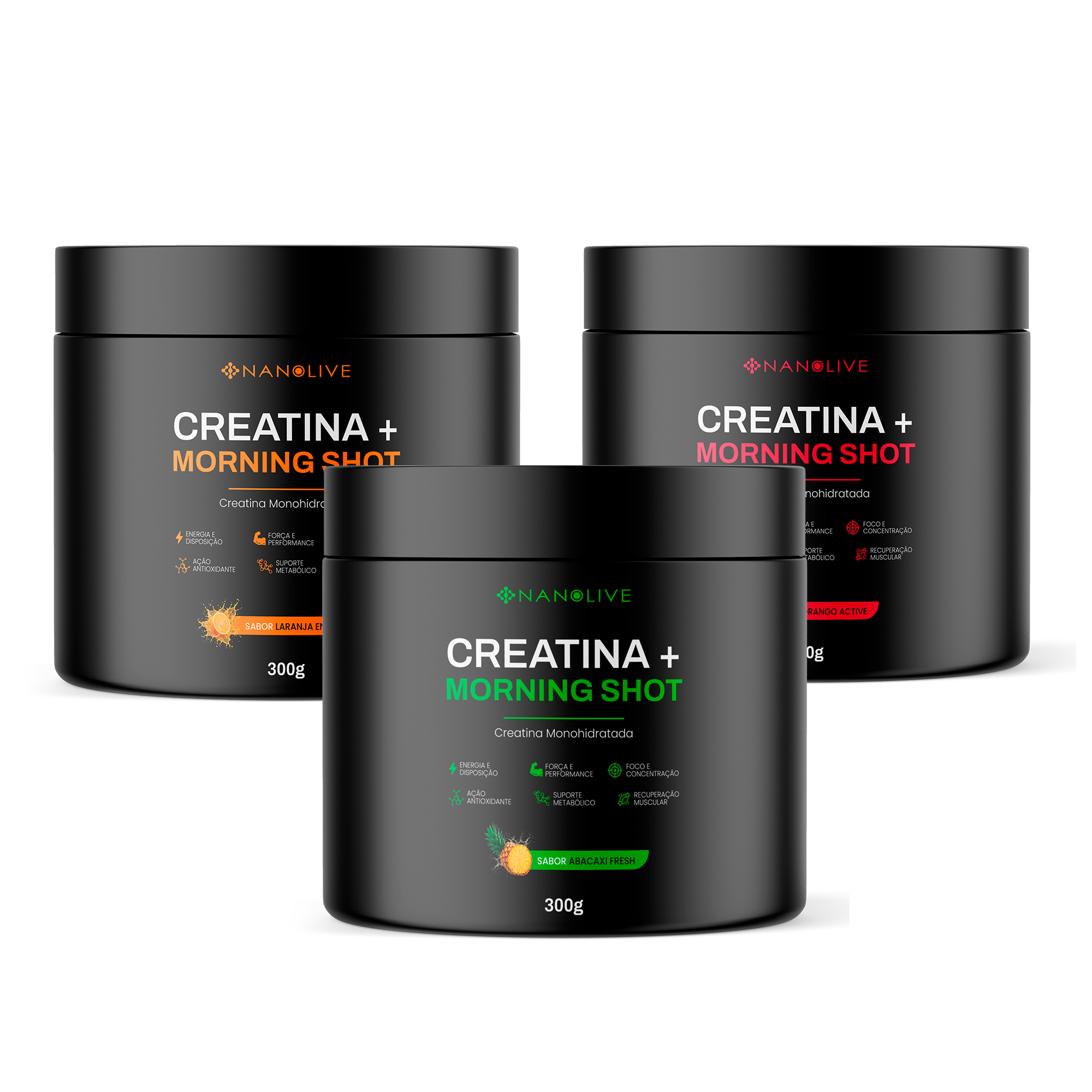 Enquanto a creatina tradicional atua apenas na força muscular, o Morning Shot Nanolive vai além:
