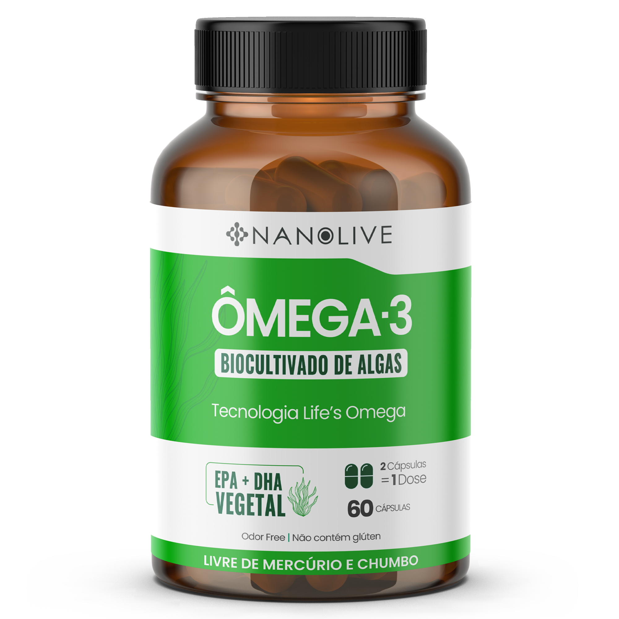 Ômega 3 de Algas Biocultivado Nanolive Nutrição – 60 Cápsulas | DHA + EPA Vegetal com Tecnologia Life’s Omega